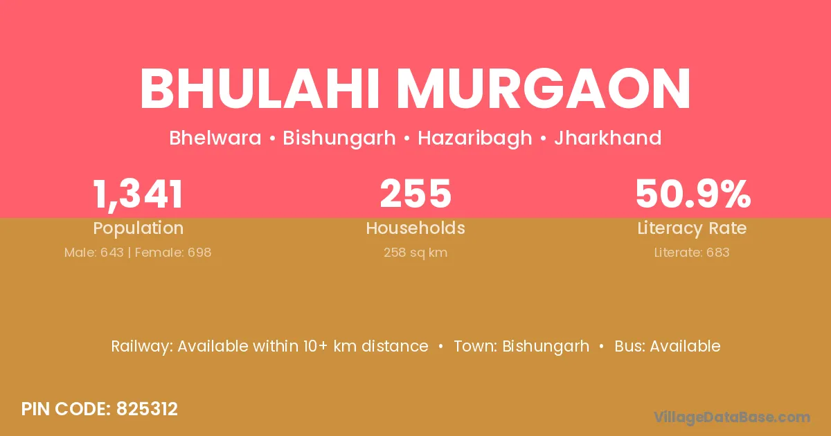 Bhulahi Murgaon village has a total population of 1,341 people, of which 643 are males and 698 are females.