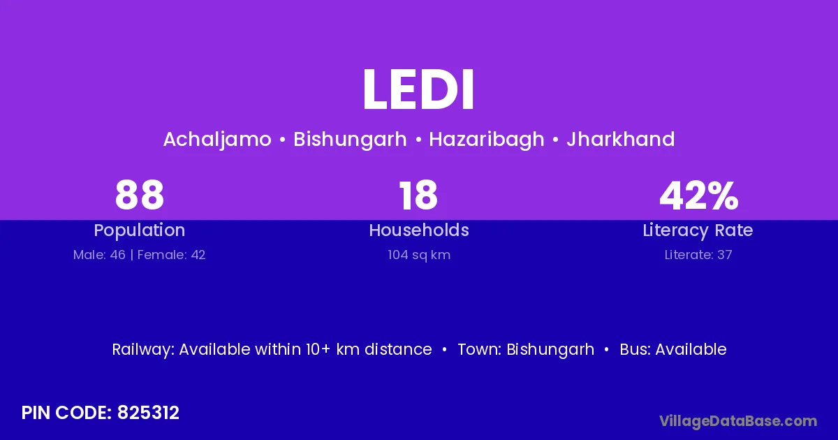According to Census 2011 information, the village code of Ledi village is 825312.