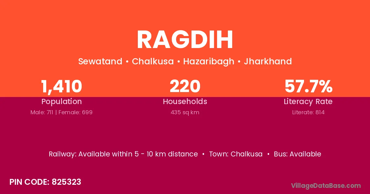 According to Census 2011 information, the village code of Ragdih village is 825323.