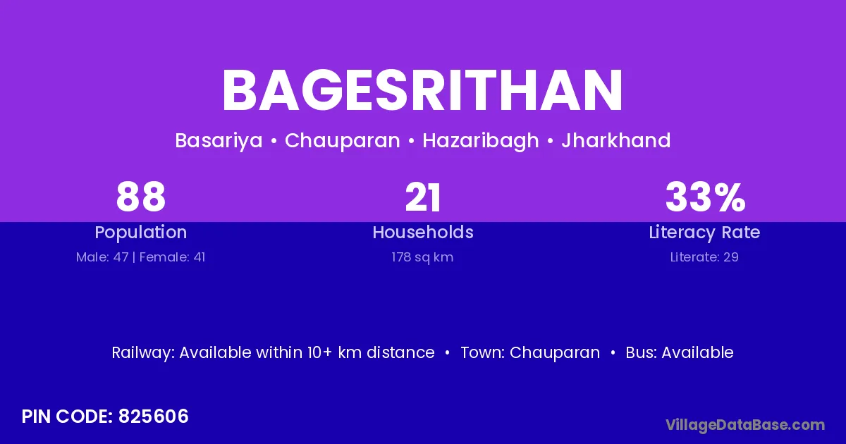 Bagesrithan village is located in the Chauparan Subdivision of the Hazaribagh district in Jharkhand .