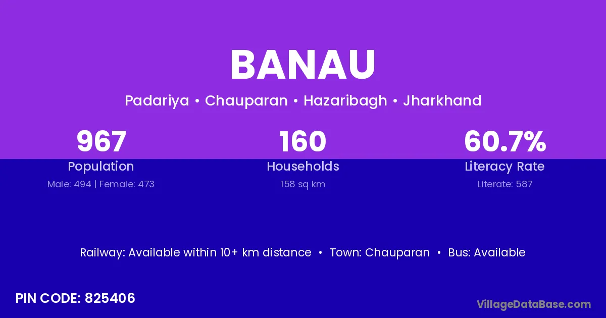 Banau village has a total population of 967 people, of which 494 are males and 473 are females.
