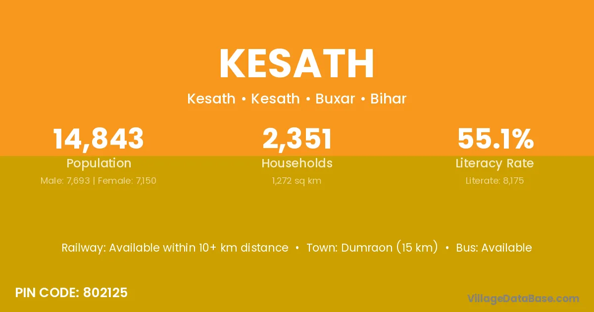 The literacy rate of Kesath village is 69.24%. Male literacy stands at 74.77% and female literacy at 63.07%.