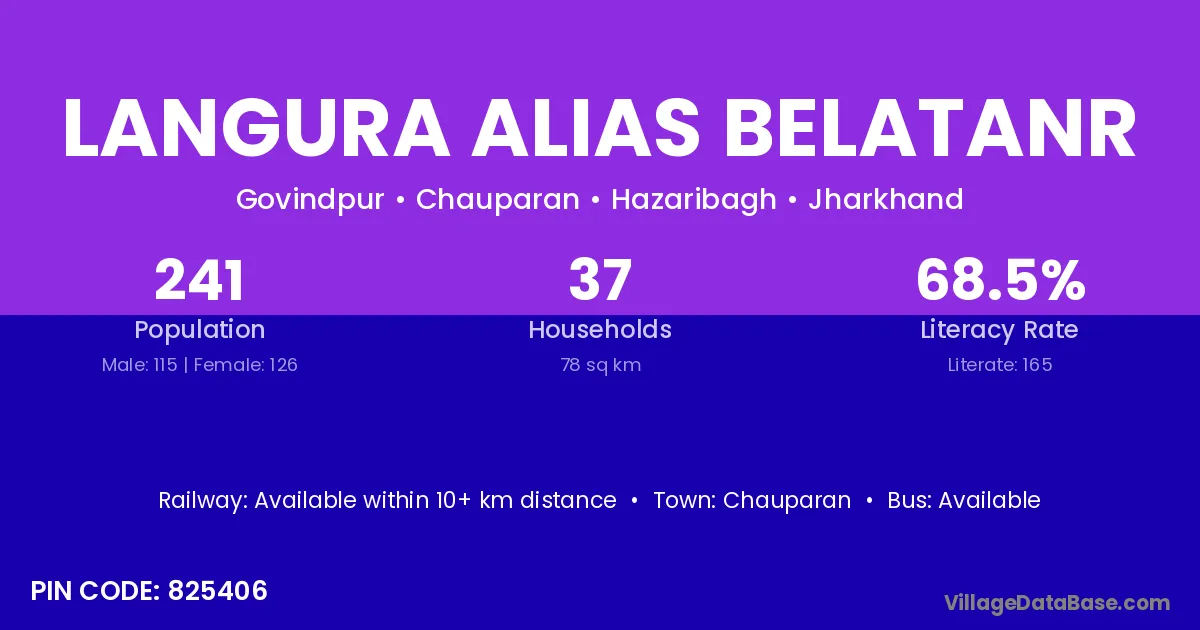 Langura Alias Belatanr village has a total population of 241 people, of which 115 are males and 126 are females.
