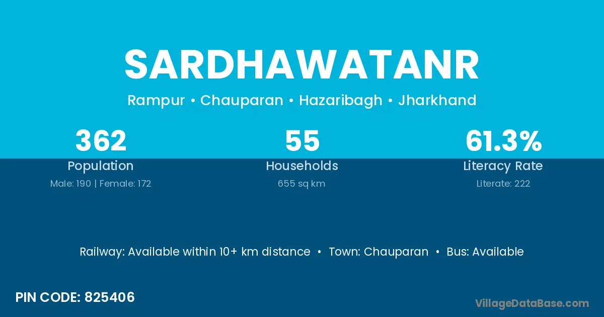 Sardhawatanr village has a total population of 362 people, of which 190 are males and 172 are females.