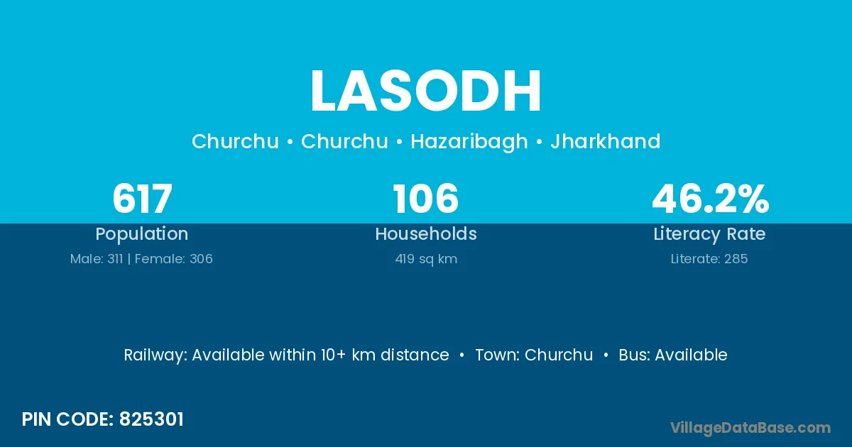 Lasodh village is located in the Churchu Subdivision of the Hazaribagh district in Jharkhand .