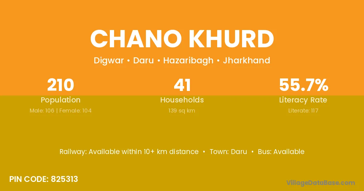 Chano Khurd village has a total population of 210 people, of which 106 are males and 104 are females.