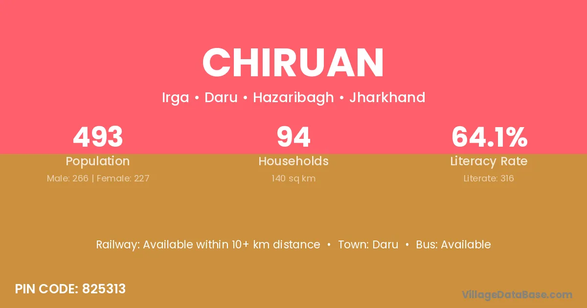According to Census 2011 information, the village code of Chiruan village is 825313.