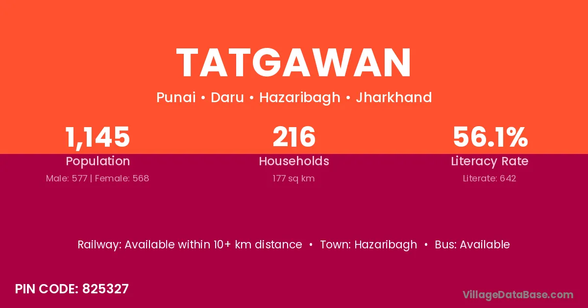 Tatgawan village has a total population of 1,145 people, of which 577 are males and 568 are females.