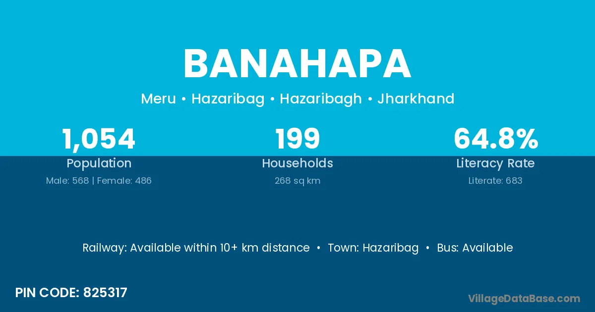 Hazaribag is the nearest town to Banahapa village for major economic activities