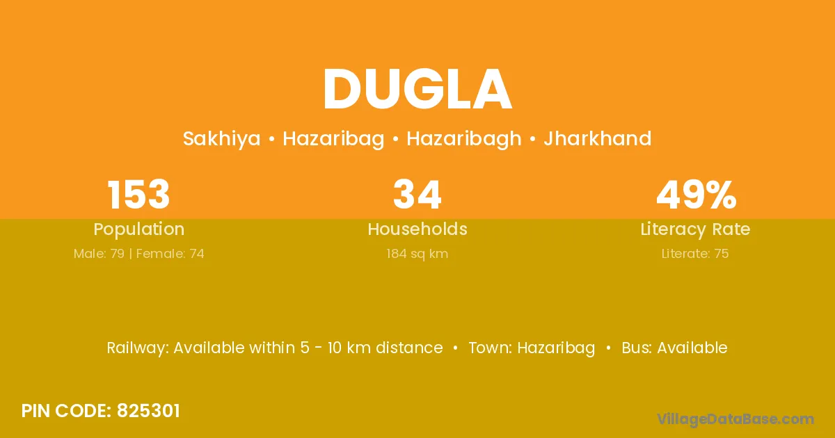 Hazaribag is the nearest town to Dugla village for major economic activities