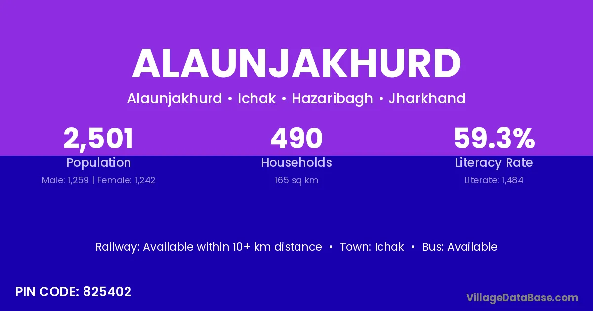 Alaunjakhurd village has a total population of 2,501 people, of which 1,259 are males and 1,242 are females.