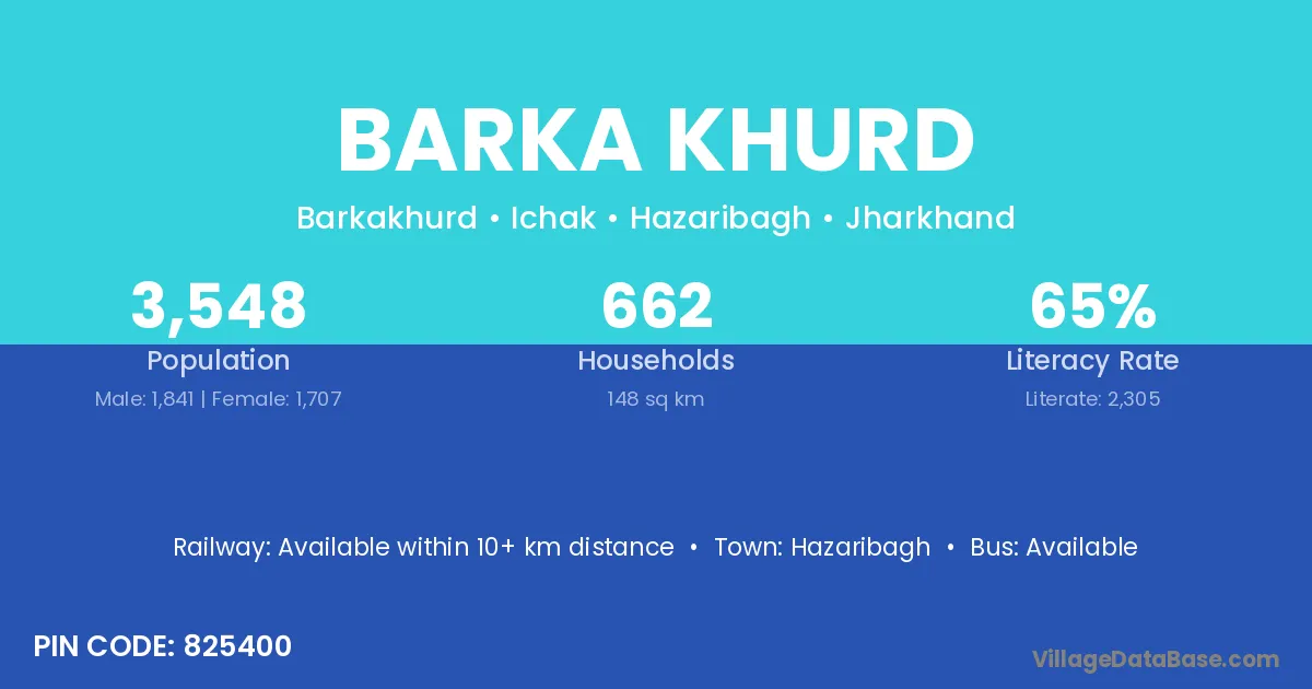 Hazaribagh is the nearest town to Barka Khurd village for major economic activities