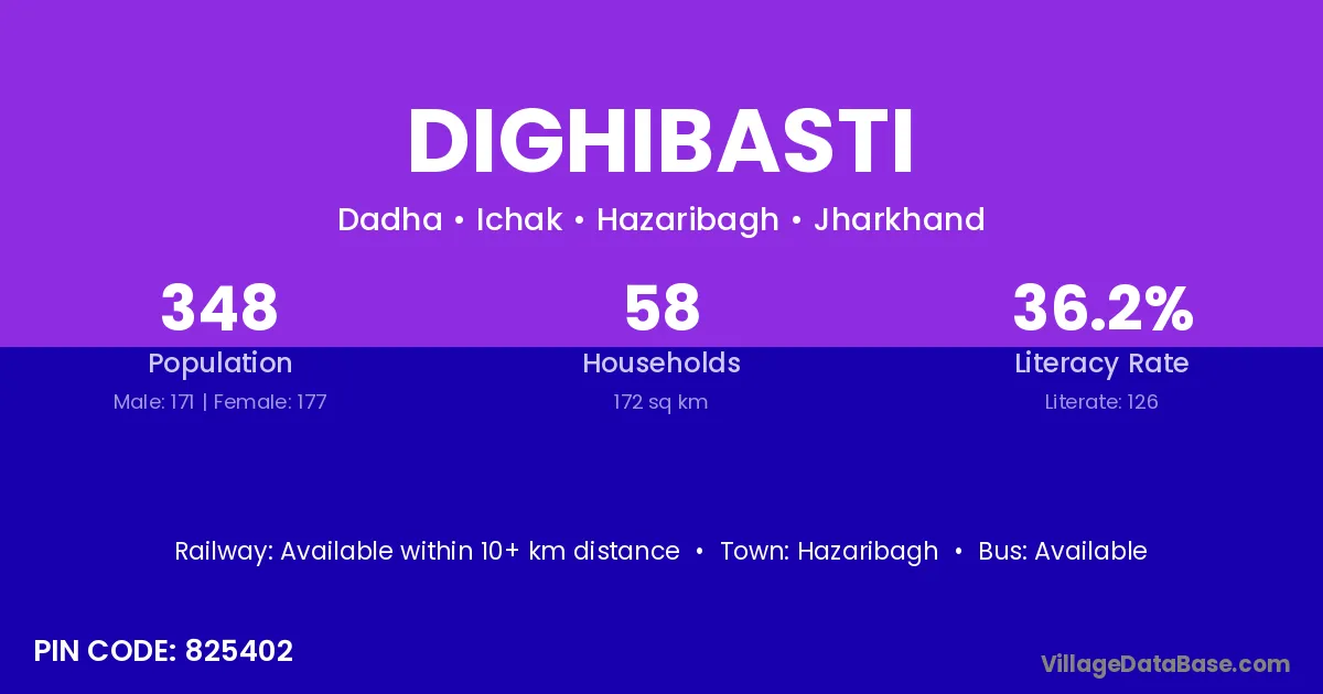 Hazaribagh is the nearest town to Dighibasti village for major economic activities
