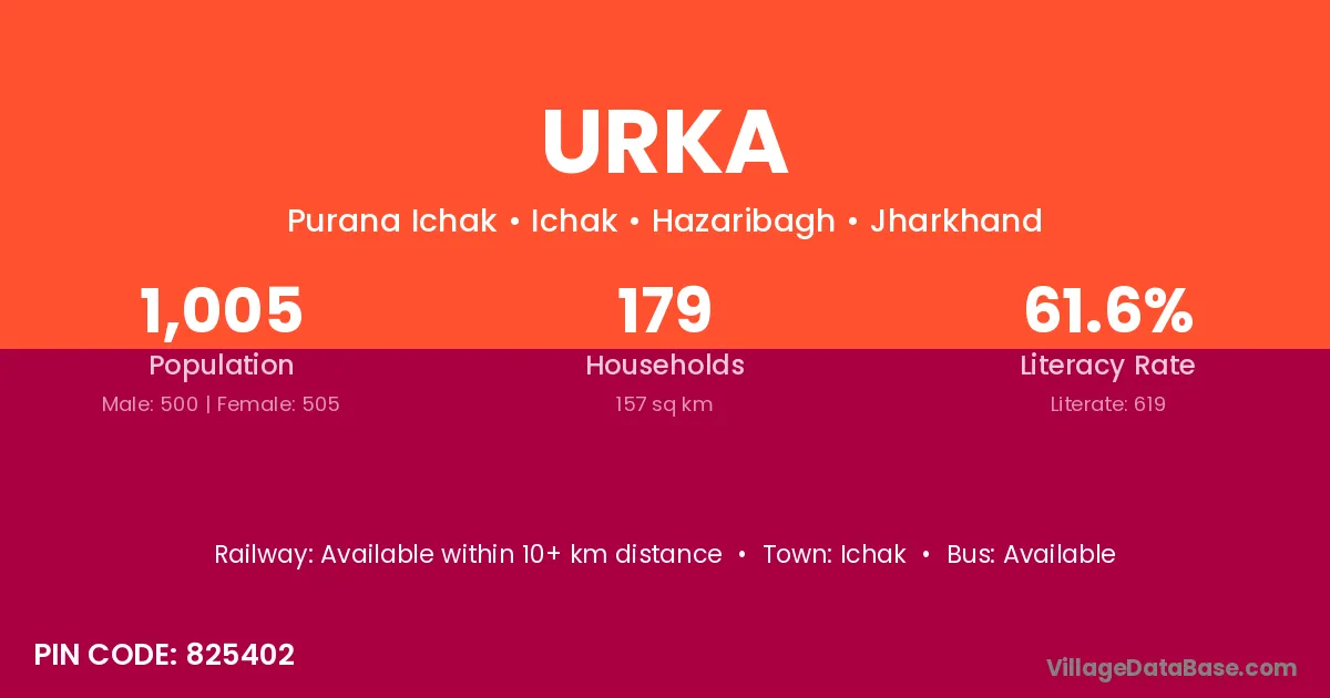 According to Census 2011 information, the village code of Urka village is 825402.