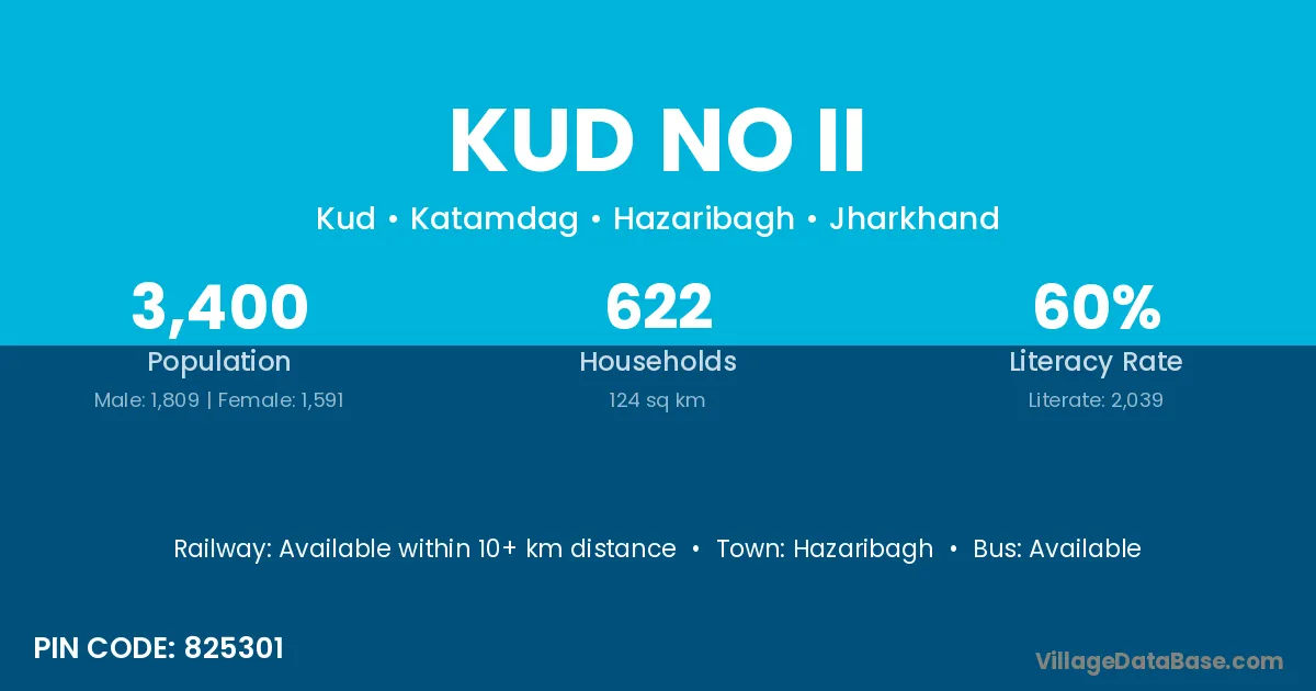 Hazaribagh is the nearest town to Kud No Ii village for major economic activities