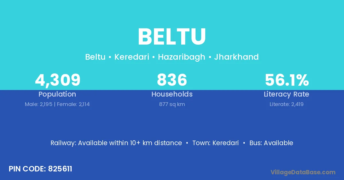 Beltu village has a total population of 4,309 people, of which 2,195 are males and 2,114 are females.