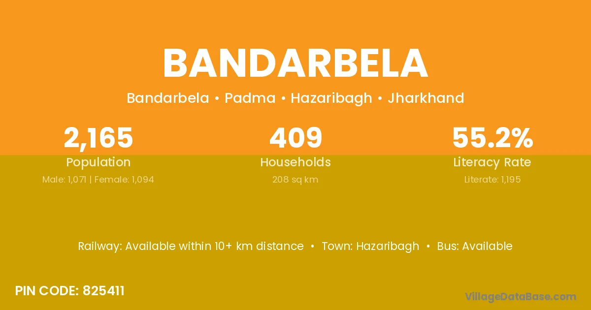 Hazaribagh is the nearest town to Bandarbela village for major economic activities