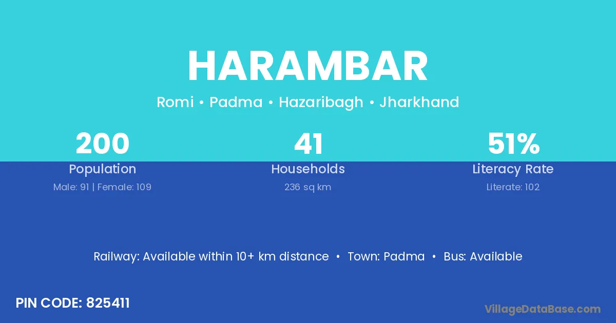 According to Census 2011 information, the village code of Harambar village is 825411.