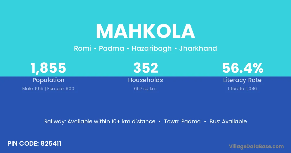 Padma is the nearest town to Mahkola village for major economic activities