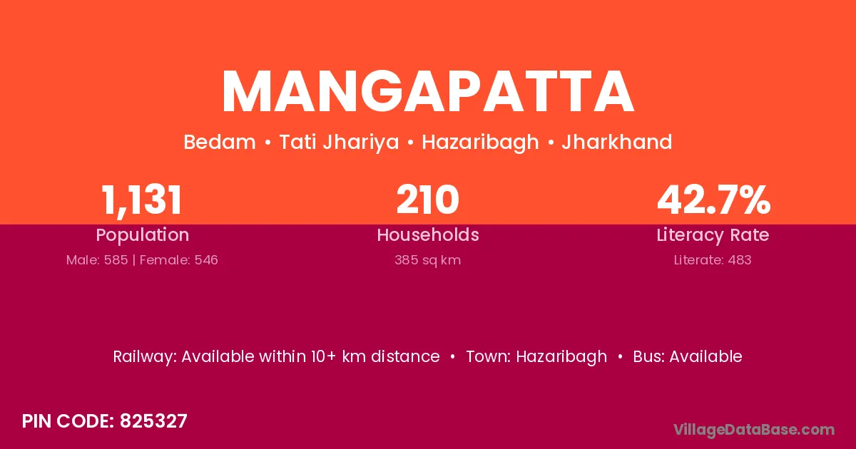 Hazaribagh is the nearest town to Mangapatta village for major economic activities