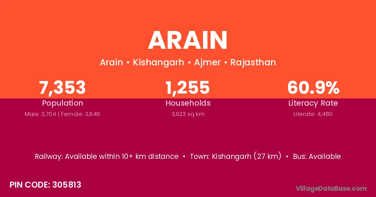 According to Census 2011 information, the village code of Arain village is 814166.