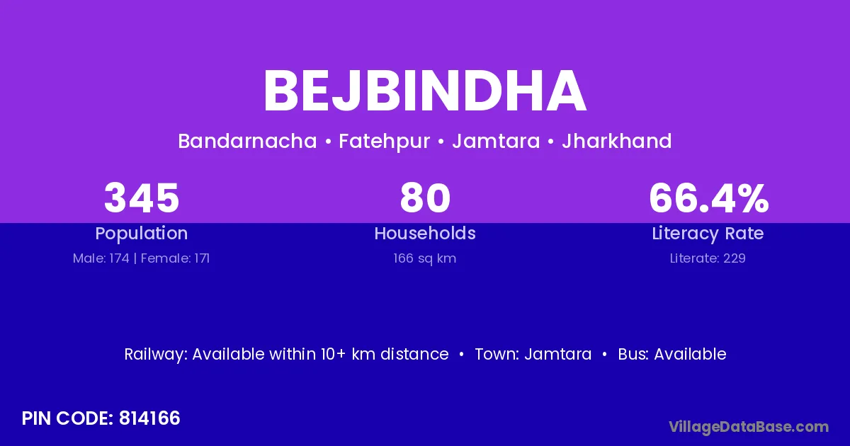 Jamtara is the nearest town to Bejbindha village for major economic activities