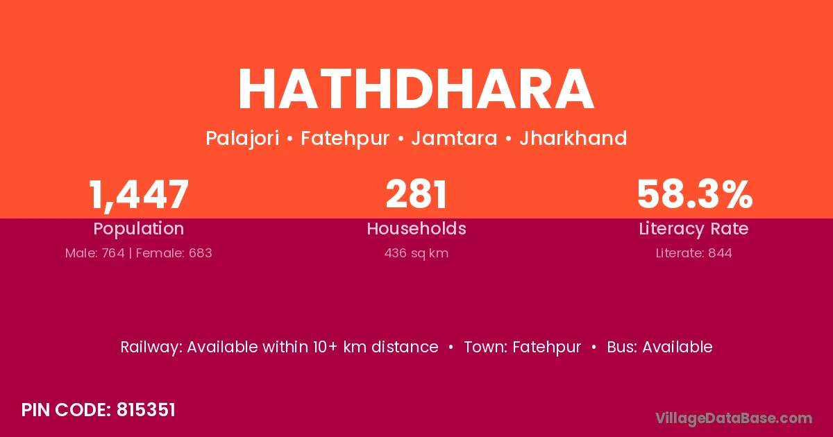 Hathdhara village has a total population of 1,447 people, of which 764 are males and 683 are females.
