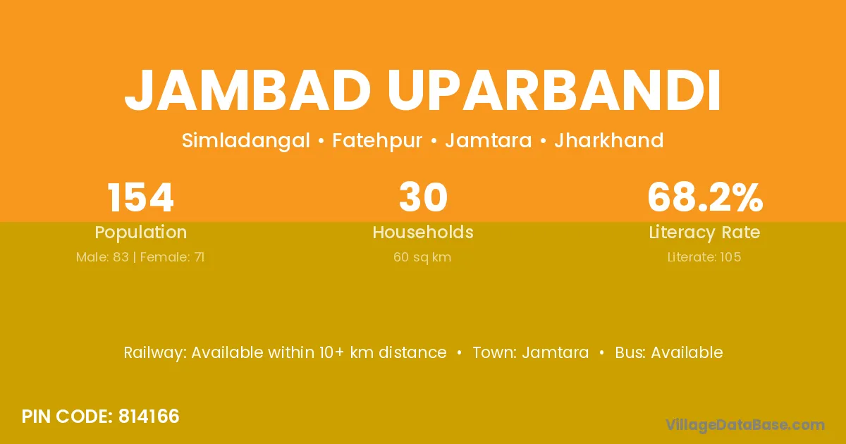Jambad Uparbandi village has a total population of 154 people, of which 83 are males and 71 are females.