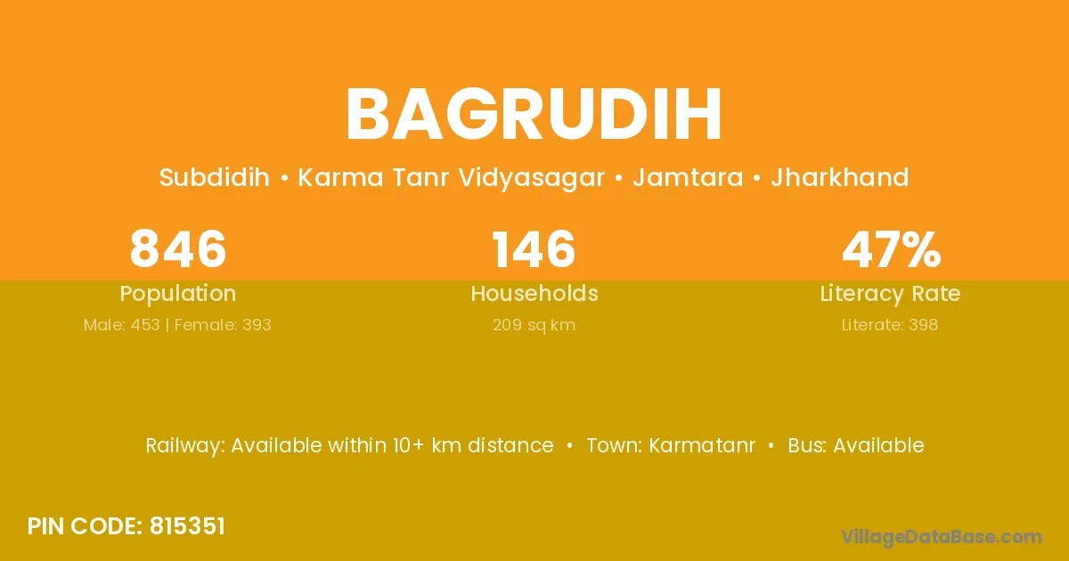 Karmatanr is the nearest town to Bagrudih village for major economic activities