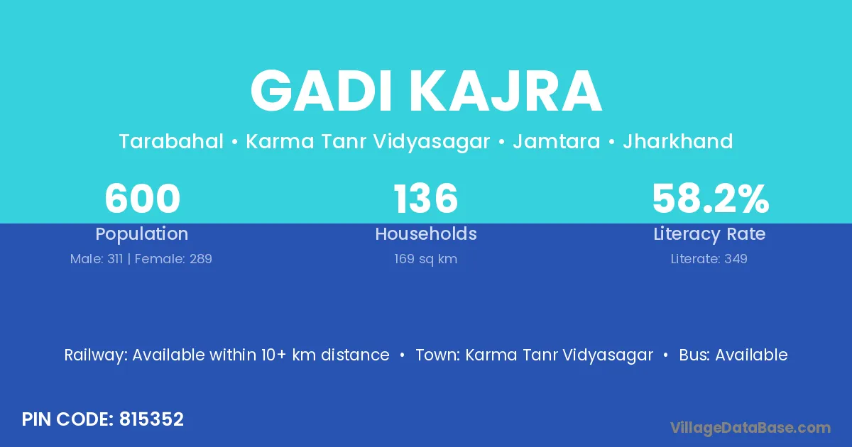 Karma Tanr Vidyasagar is the nearest town to Gadi Kajra village for major economic activities