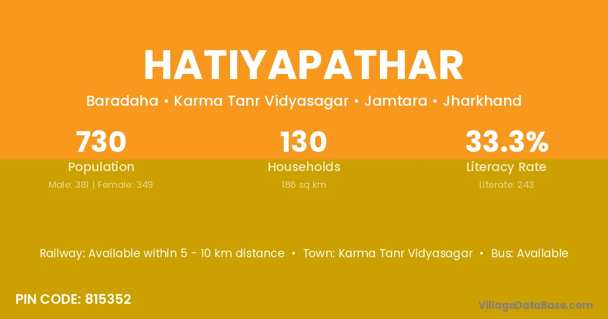 Karma Tanr Vidyasagar is the nearest town to Hatiyapathar village for major economic activities