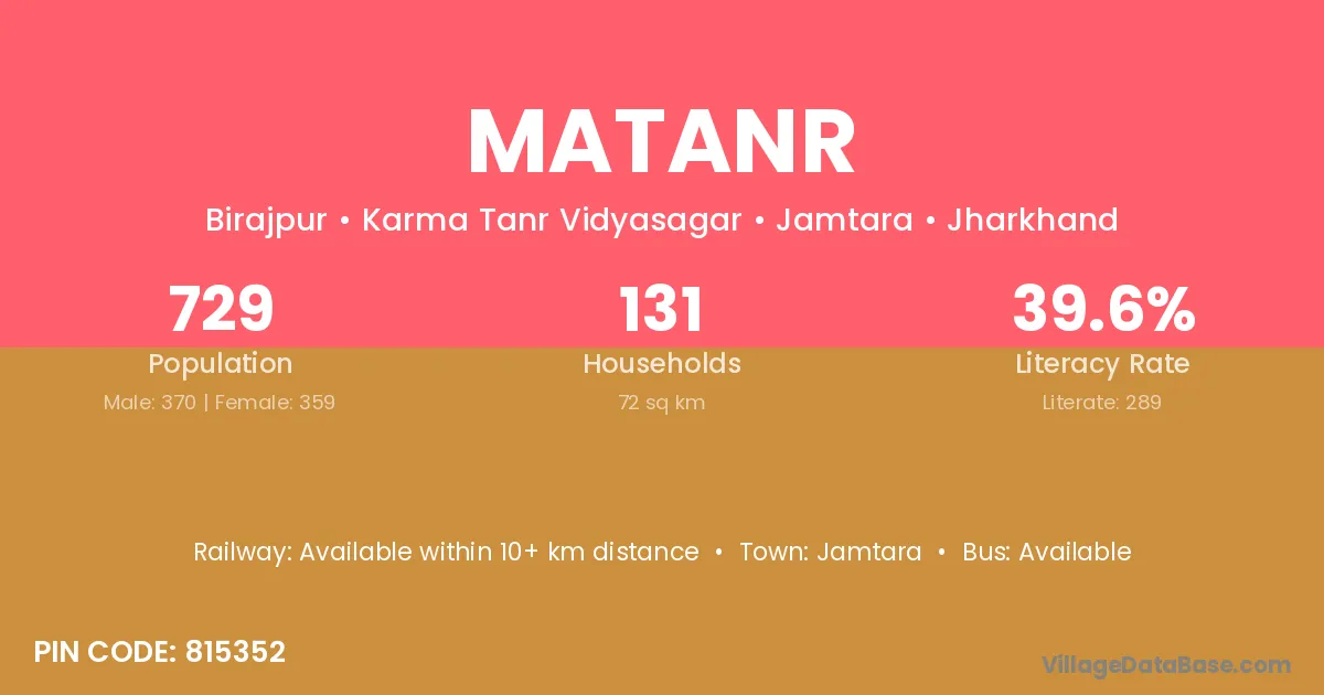 Jamtara is the nearest town to Matanr village for major economic activities