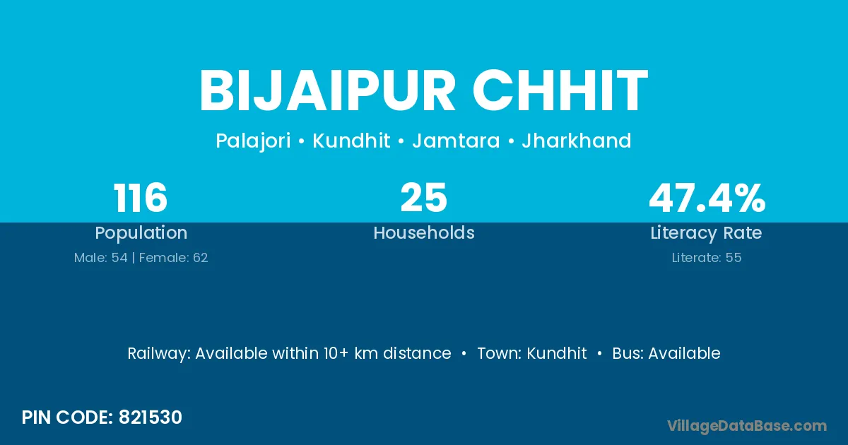 Bijaipur Chhit village has a total population of 116 people, of which 54 are males and 62 are females.