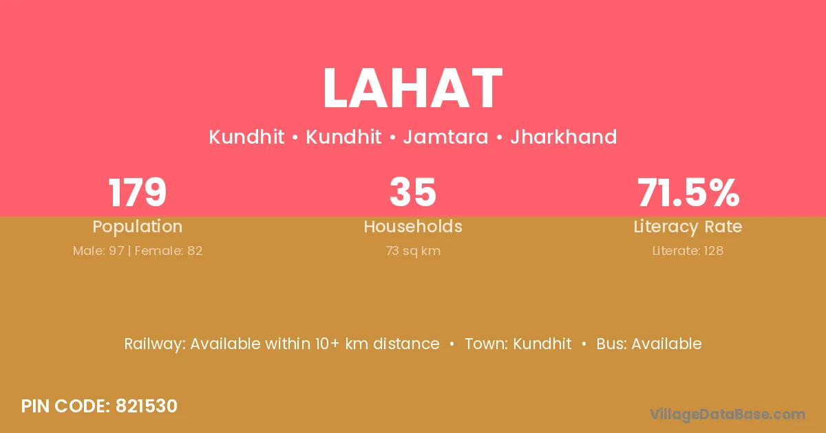 Lahat village is located in the Kundhit Subdivision of the Jamtara district in Jharkhand .