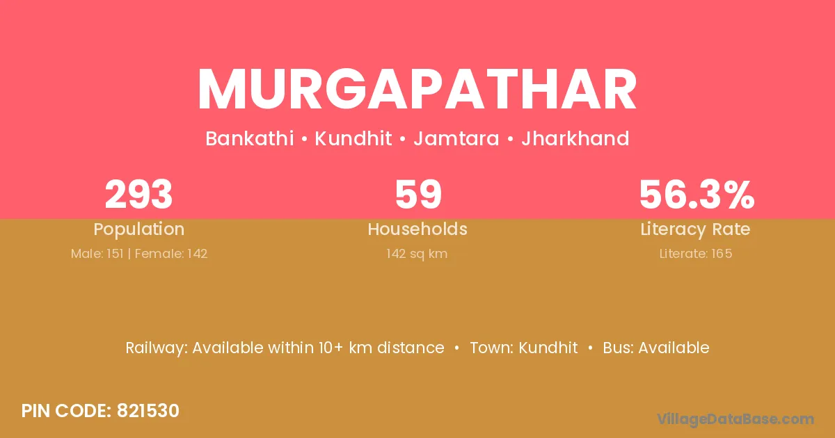Murgapathar village has a total population of 293 people, of which 151 are males and 142 are females.
