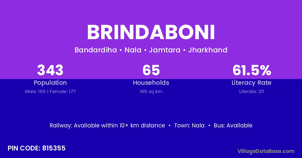 According to Census 2011 information, the village code of Brindaboni village is 815355.