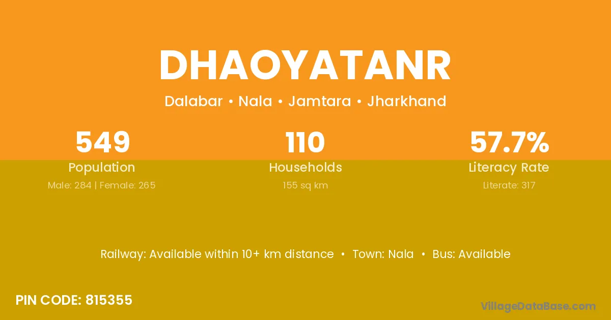 Dhaoyatanr village has a total population of 549 people, of which 284 are males and 265 are females.