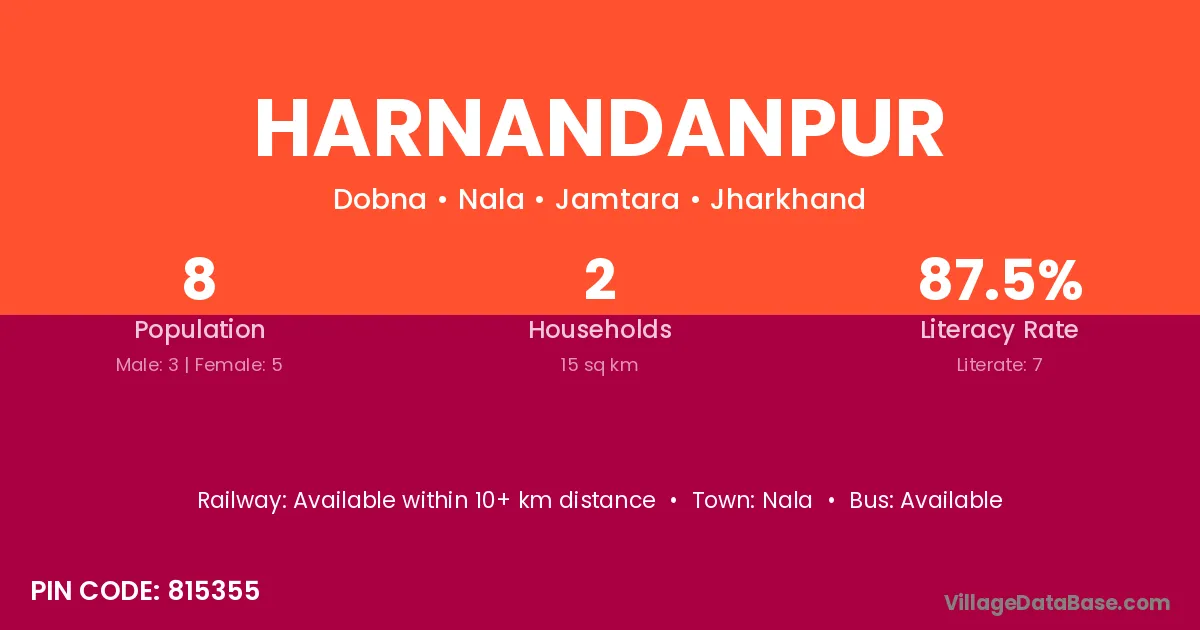 Harnandanpur village has a total population of 8 people, of which 3 are males and 5 are females.