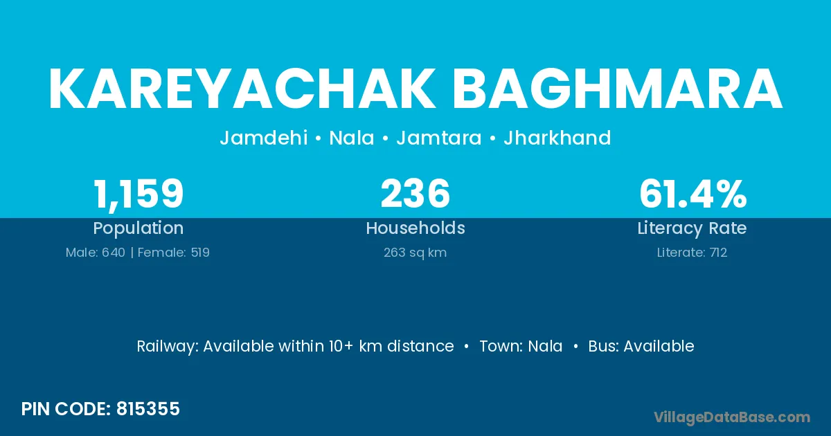 Nala is the nearest town to Kareyachak Baghmara village for major economic activities