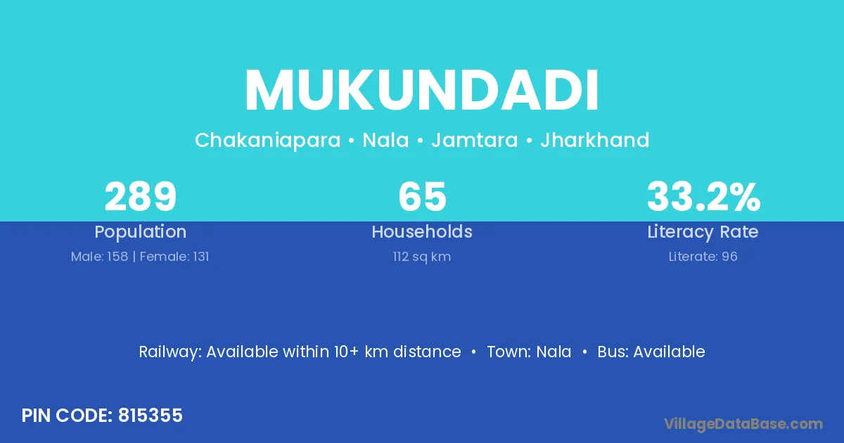 Nala is the nearest town to Mukundadi village for major economic activities
