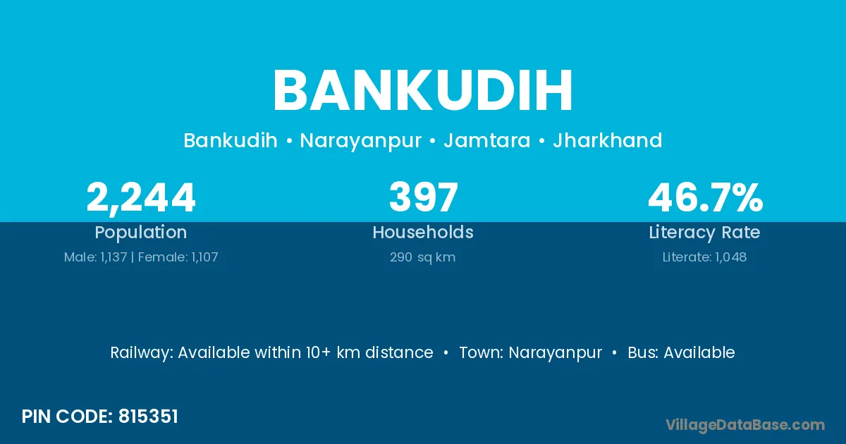 Narayanpur is the nearest town to Bankudih village for major economic activities