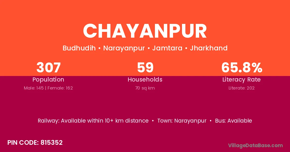 Chayanpur village has a total population of 307 people, of which 145 are males and 162 are females.