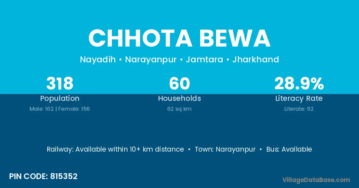 Chhota Bewa village is located in the Narayanpur Subdivision of the Jamtara district in Jharkhand .