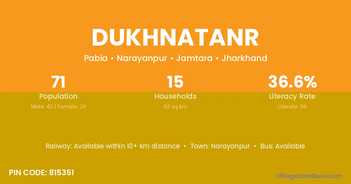 The literacy rate of Dukhnatanr village is 36.62%. Male literacy stands at 50.00% and female literacy at 17.24%.