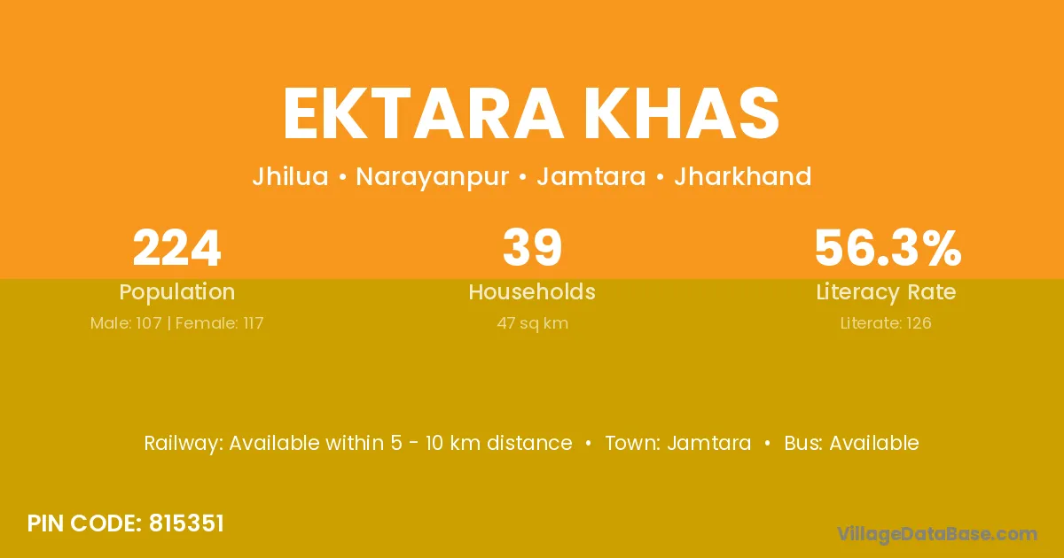 Jamtara is the nearest town to Ektara Khas village for major economic activities