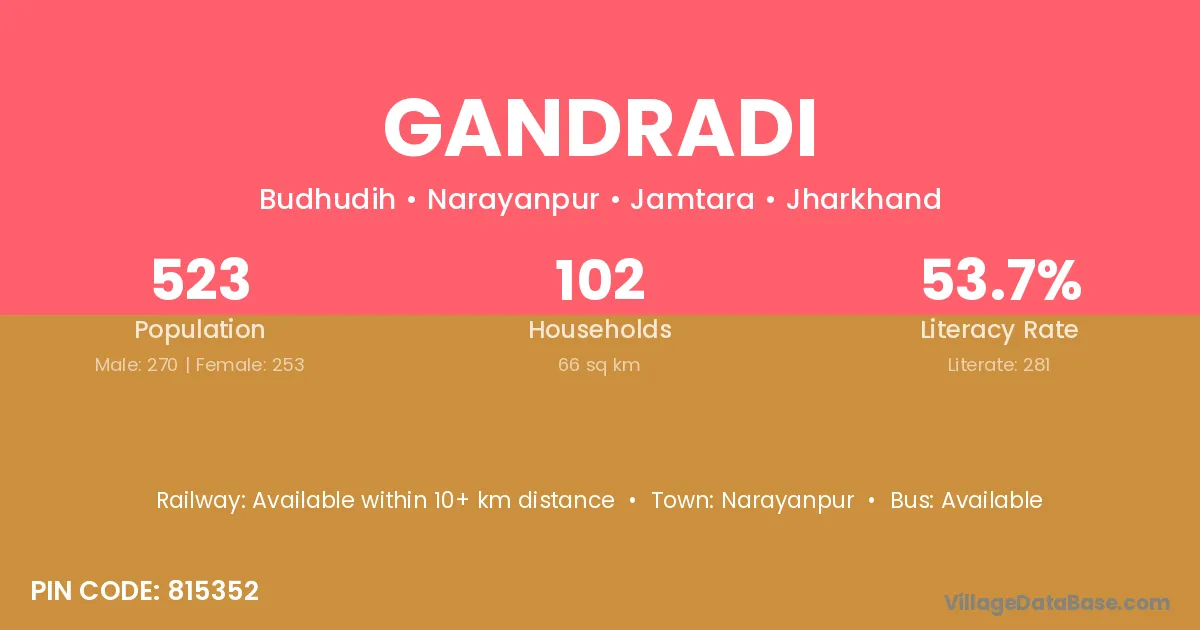 Gandradi village is located in the Narayanpur Subdivision of the Jamtara district in Jharkhand .