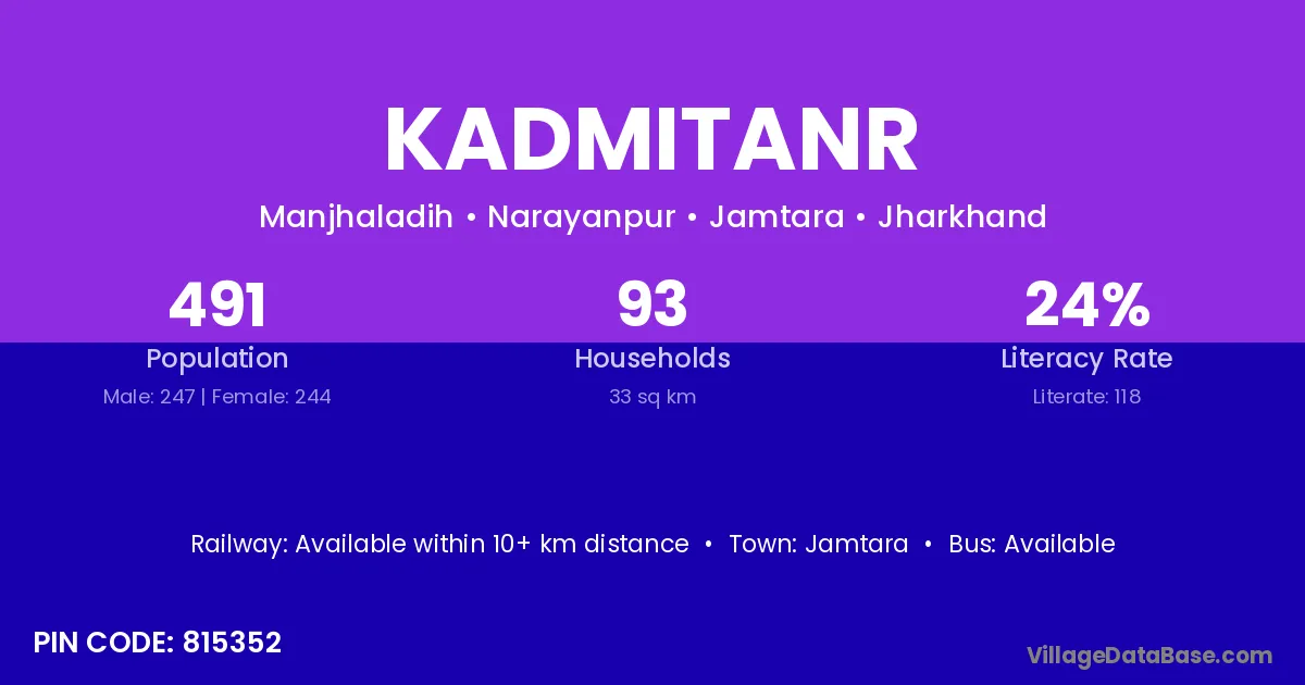 Jamtara is the nearest town to Kadmitanr village for major economic activities
