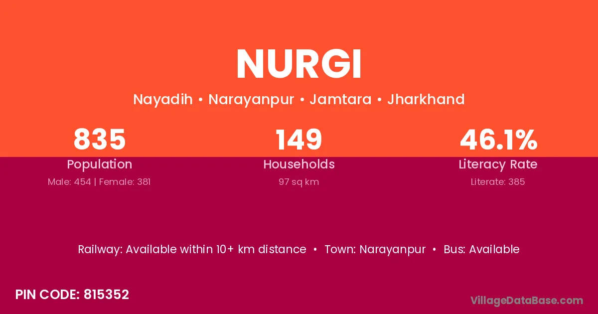 Nurgi village is located in the Narayanpur Subdivision of the Jamtara district in Jharkhand .