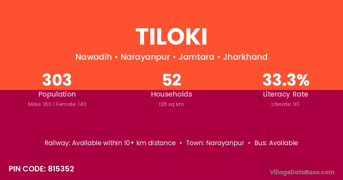 Tiloki village is located in the Narayanpur Subdivision of the Jamtara district in Jharkhand .