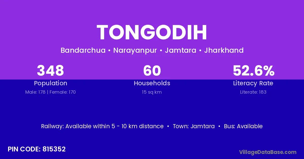 Jamtara is the nearest town to Tongodih village for major economic activities